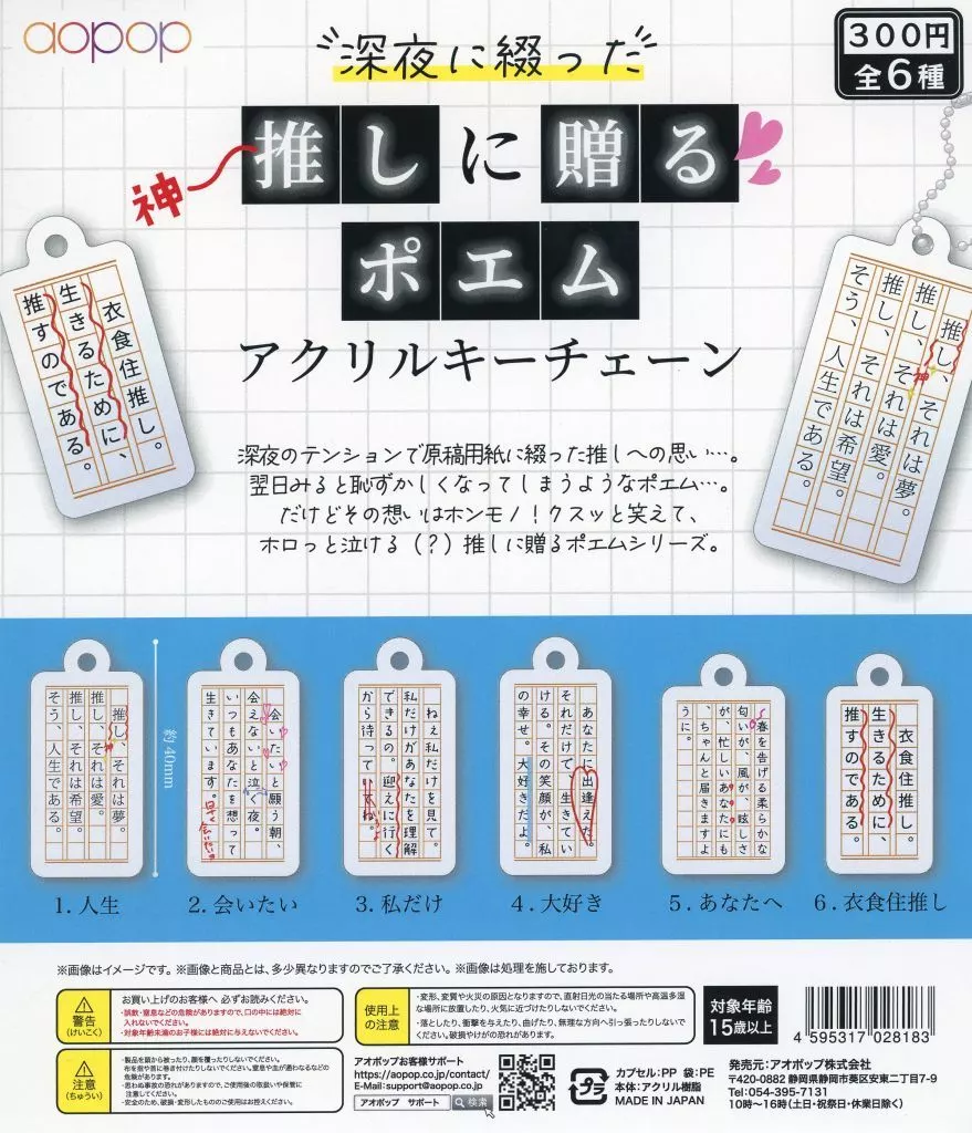 商品解説■「深夜に綴った神推しに贈るポエム アクリルキーチェーン」のガチャ台紙です。