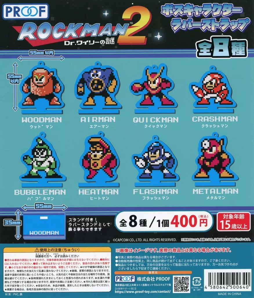 商品解説■「ロックマン2 Dr.ワイリーの謎 ボスキャラクター ラバーストラップ」のガチャ台紙です。