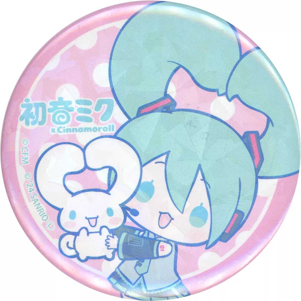 バッジ・ピンズ 初音ミク×シナモロール(みみハート) 「初音ミク×シナモロール POP UP CORNER ホログラム缶バッジ(57mm) 01.コラボイラスト」