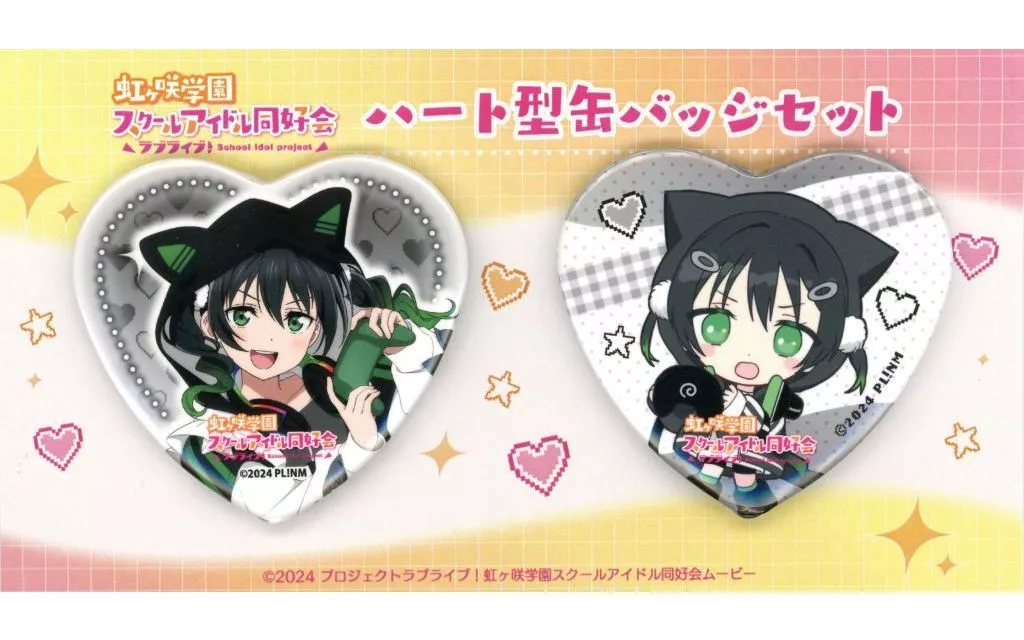 商品解説■「ラブライブ!虹ヶ咲学園スクールアイドル同好会×ラウンドワン」の「ハート型缶バッジ2個セット」になります。