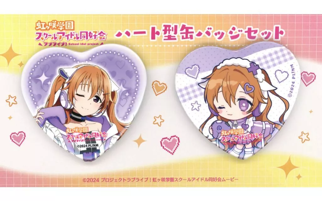 商品解説■「ラブライブ!虹ヶ咲学園スクールアイドル同好会×ラウンドワン」の「ハート型缶バッジ2個セット」になります。
