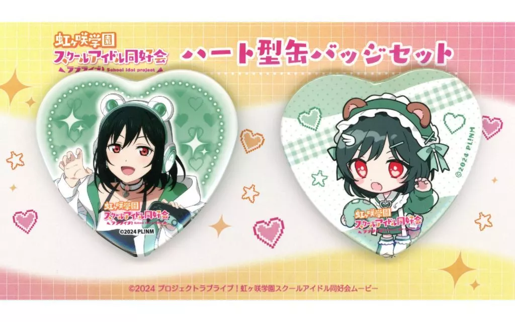商品解説■「ラブライブ!虹ヶ咲学園スクールアイドル同好会×ラウンドワン」の「ハート型缶バッジ2個セット」になります。