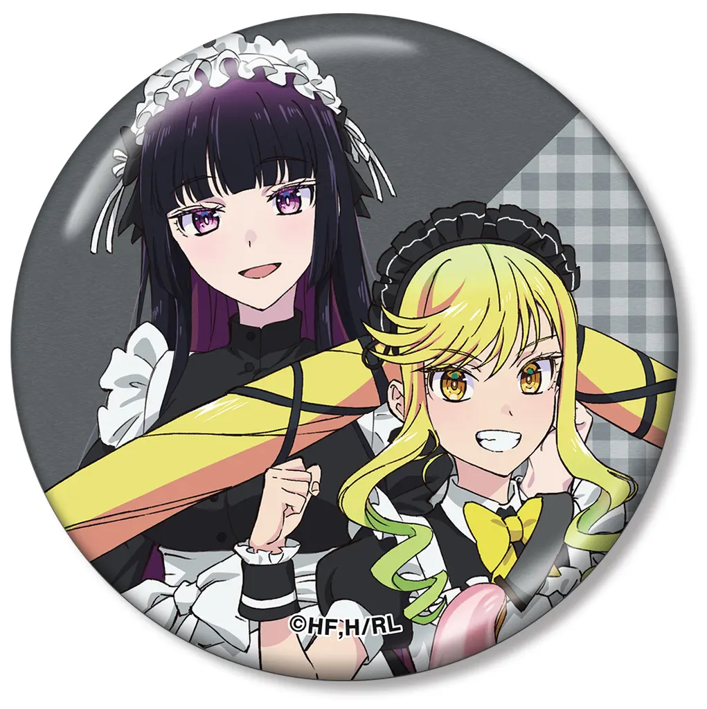 バッジ・ビンズ 鈴ノ宮りりさ&黒鉄音羽 描き下ろし メイドver. メタリック缶バッジ 「ロックは淑女の嗜みでして」