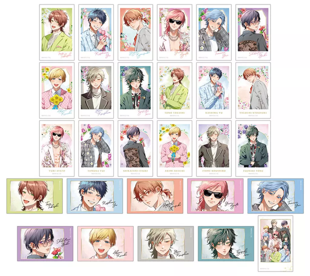 商品解説■「ヤリチン☆ビッチ部」より、『トレーディングインスタントカメラ風イラストカード』の登場です。【商品詳細】全28種類1パック:2枚入りサイズ:約80×50mm素材:紙<キャラクターラインナップ>遠野高志加島優矢口恭介百合絢斗田村唯鹿谷樹明美圭一糸目幸士郎藤咲透