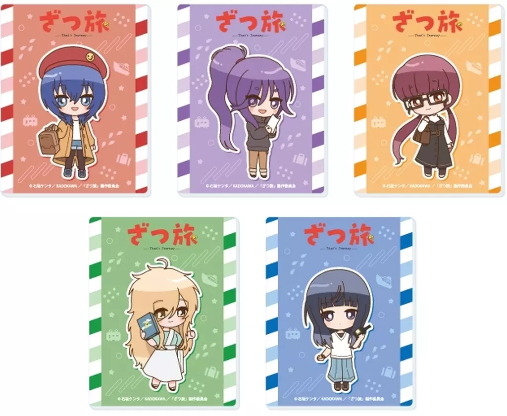 商品解説■こちらの商品は、BOX販売(1BOX5個入り)となります。約7×9cmのアクリルカードです。集めてお手持ちのキャラフレームに入れてもお使いいただけます。【商品詳細】全5種類サイズ:約短辺70×長辺90mm素材:アクリル(C)石坂ケンタ/KADOKAWA/「ざつ旅」製作委員会<ラインナップ>鈴ヶ森ちか蓮沼暦鵜木ゆい糀谷冬音天空橋りり