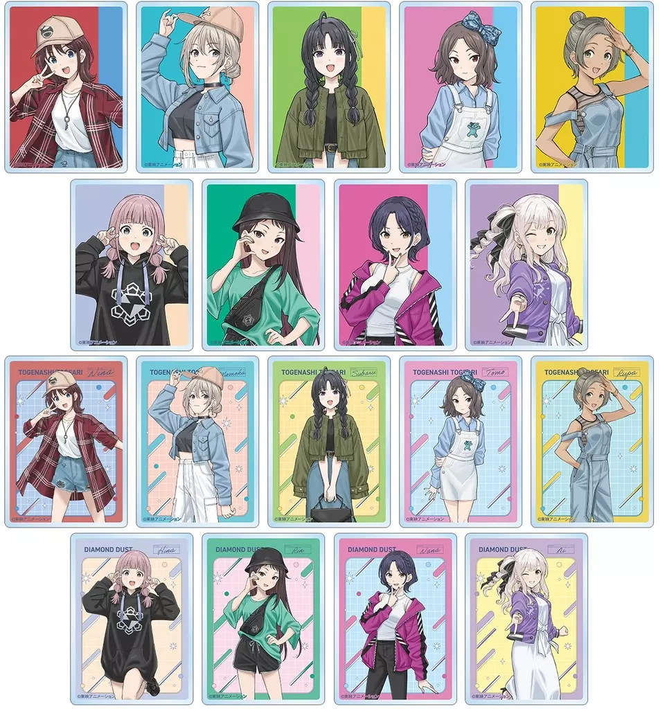 井芹仁菜、河原木桃香、安和すばる、海老塚智、ルパ、ヒナ、リン、ナナ、アイの描き下ろしイラストをアクリルカードに仕上げました。