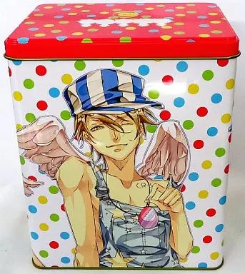 ドット柄がキュートな、エンジェル仕様な5人が描かれた缶ボックスです。