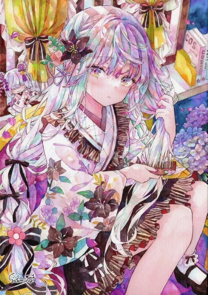 同人その他雑貨 【オリジナル】A4キャンバスアート 花梳 -HANATOKI-/優子鈴
