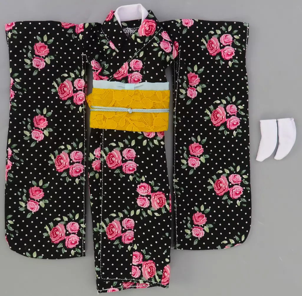 ドールアクセサリー 27cm用 2024年 裏無し着物 花柄/黒 「リカちゃん」 リカちゃんキャッスル限定