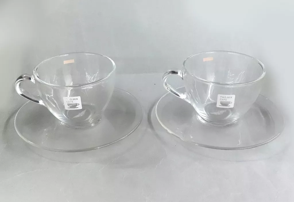 商品解説■「TWO-MIX CAFE」のガラスマグカップ&ソーサー2個セットです。