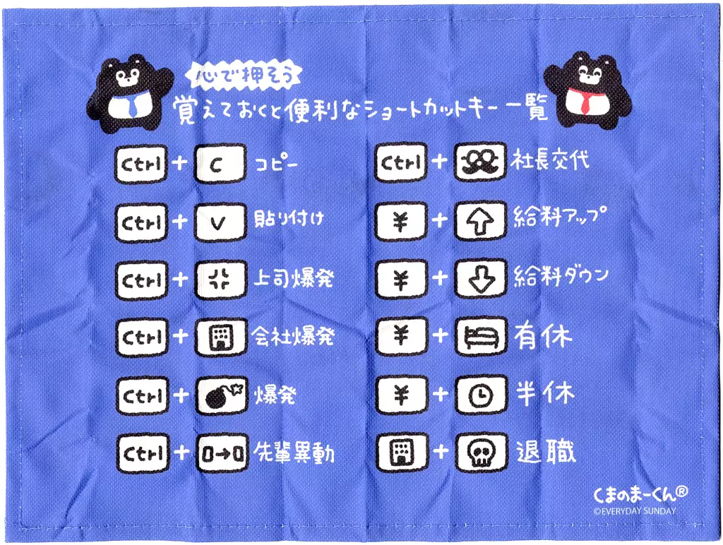 ランチョンマット 覚えておくと便利なショートカットキー一覧 「くまのまーくん 社会人のための布製ランチョンマット」