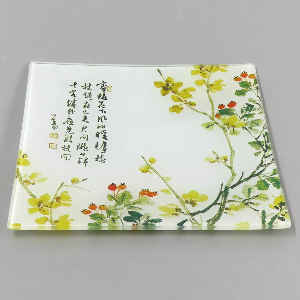皿・ボウル 君子之風-夏(緑萼梅) 典雅玻璃小方盤(皿)