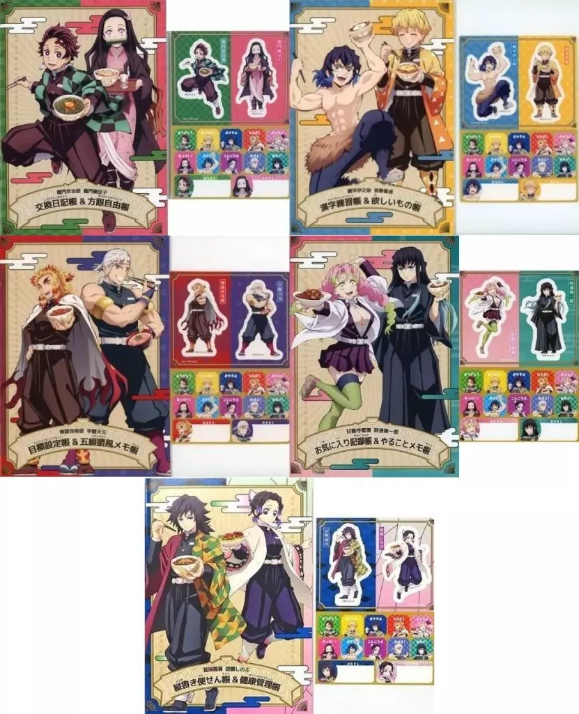 商品解説■こちらの商品は「鬼滅の刃×すき家」メニュー注文有償特典の「全集中!ノート&シール」全5種セットです。【商品詳細】<セット内容>竈門炭治郎&竈門禰豆子(交換日記帳&方眼自由帳)我妻善逸&嘴平伊之助(漢字練習帳&欲しいもの帳)煉獄杏寿郎&宇髄天元(目標設定帳&五線譜風メモ帳)甘露寺蜜璃&時透無一郎(お気に入り記録帳&やることメモ帳)冨岡義勇&胡蝶しのぶ(縦書き便せん帳&健康管理帳)サイズ:約214×155mm