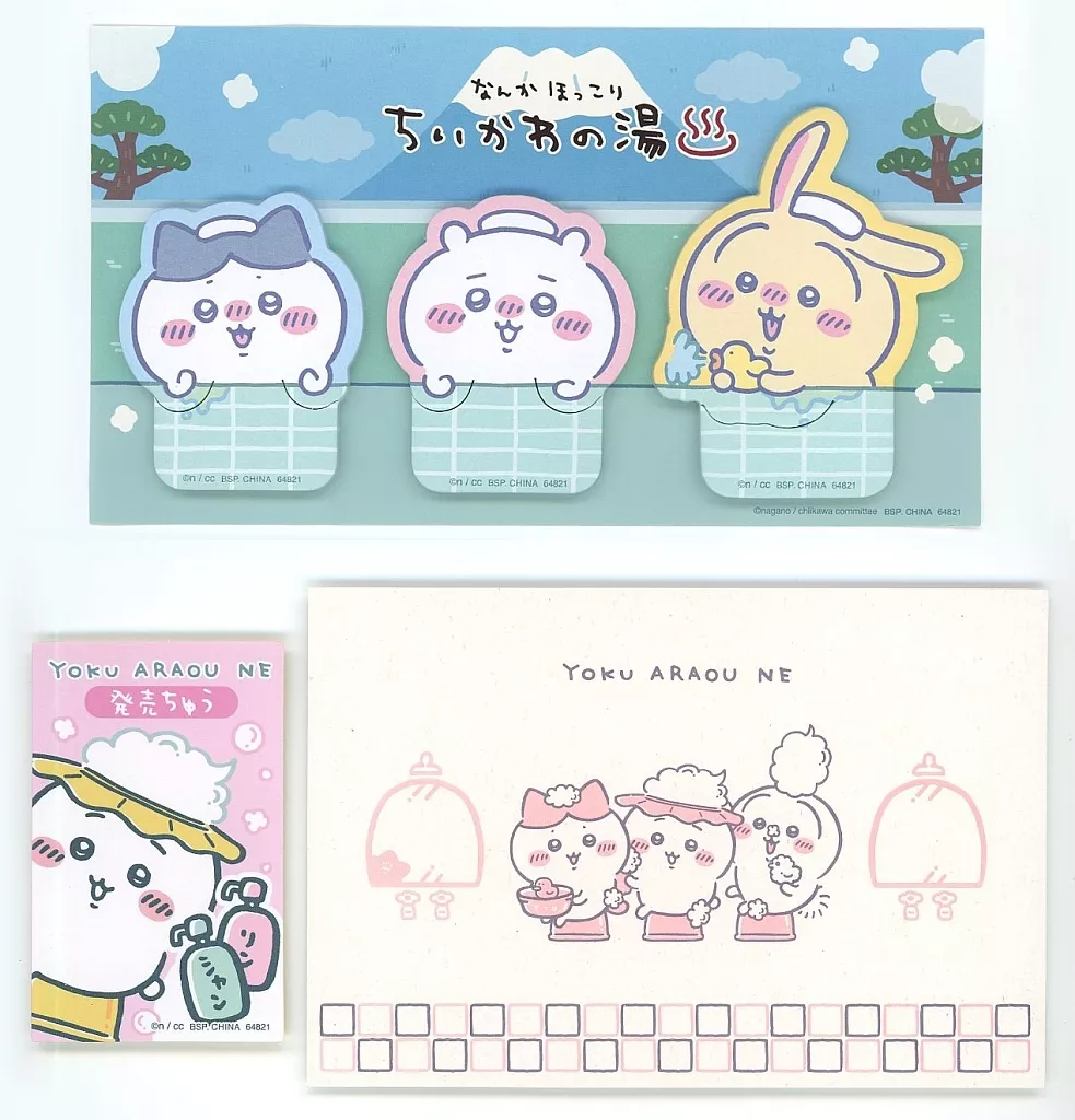 商品解説■「一番くじ ちいかわ ~なんかほっこり ちいかわの湯~」G賞景品の『ステーショナリー(付箋)』です。【商品詳細】サイズ:[付箋台紙]約18cm(付箋 約5.5cm)、[ステッカー]約8cm、[メッセージカード]約14cm仕様:ステッカー、メッセージカード付き