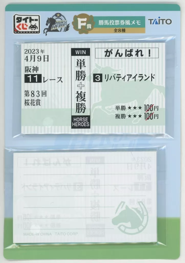 ノート・メモ帳 リバティアイランド 勝馬投票券風メモ 「タイトーくじ HORSE HEROES」 F賞