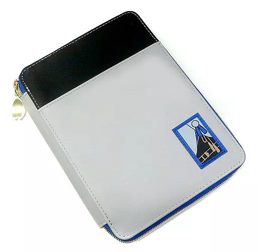 ファスナー付きのカバーはキャラクターをイメージしたデザインの織りネームがワンポイントに。カバー内側には紋を型押し。