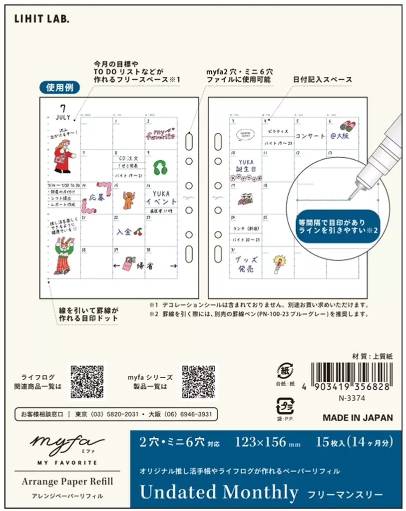 文房具その他 myfa アレンジペーパーリフィル(フリーマンスリー)