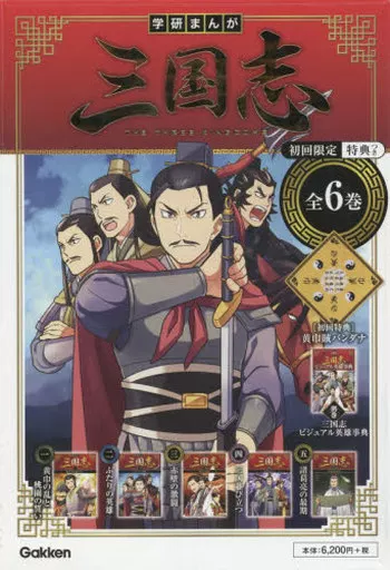 児童書ケース付き/付録:黄巾賊バンダナ付き/全6巻(5巻+別巻)セット学研まんが 三国志/中国歴史物語の決定場『三国志』を、はじめてふれる読者に向け、登場人物やストーリーを厳選してメインストーリーを構成し、全5巻の迫力あふれる漫画にまとめた。豊富なイラストで人物や戦い、などがより深くわかる別巻つき。初回特典は黄巾賊バンダナ。