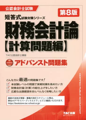 各分野の重要性を十分に吟味! 合格を確実なものにする、本試験レベルの問題を厳選収載! 『ベーシック問題集 財務会計論 計算問題編』の上級版として、 本試験の質とレベルを具現化。論点の選別・問題の難易度とも、 より本試験に近い質とレベルにあわせて編集した問題集です。 本試験での合格点突破をより確実なものにするために最適です! ★こんな方に最適です!★ ・本試験レベルの問題で実戦知識を高めたい方 ・財務会計論(計算)の総仕上げをしたい方 ・広範な出題範囲をまんべんなく攻略したい方 【改訂のポイント】収益認識、時価基準にあわせて改訂