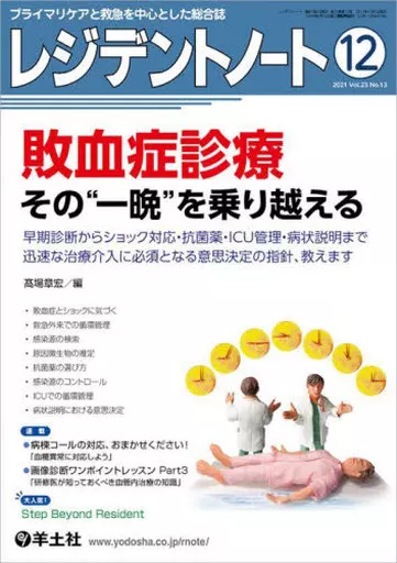 医学レジデントノート/迅速な敗血症診療に必須なのは適切な意思決定!ある敗血症患者が救急搬送されてからの一晩を例に、ショックの見極め、初期輸液、抗菌薬の選び方、感染源への介入、家族への説明など各場面での動き方・考え方を解説。