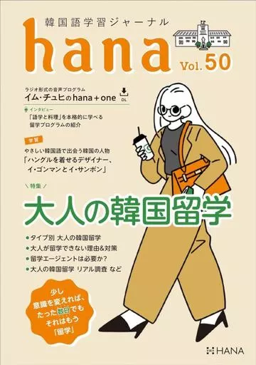 韓国語今号の特集は「意識を変えれば、数日でも留学!大人の韓国留学」です。一度は行ってみたかった韓国留学。でも留学はもう少し韓国語ができるようになってから、お金が溜まって、仕事に区切りが付いて、まとまった休みが取れて……こんな日は来ません。今回は大人だからこそできる韓国留学、大人だから気を付けなければならないポイントなどを解説しながら皆さんを韓国留学の世界にエスコートいたします。