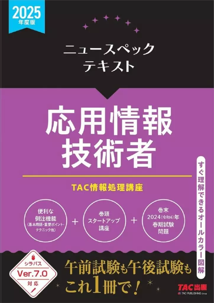 午前試験も午後試験もこれ一冊でOK!のオールカラー基本テキスト★オールカラー図解本書の特長である「図解」の効果を最大限に引き出すオールカラー印刷です。→図を色づけすることによって、考え方のプロセスまでひと目でわかるよう工夫しました。★スタートアップ講座とリファレンス性の高い目次各試験科目(章)の関連性や得意/不得意に応じた学習のメリハリなど、「学習map」等ではじめての学習を強力にサポートします。また、情報満載の目次でどこに何が載っているか、ビジュアルにひと目でわかるようにし、目的意識を持って学習を効率的に進めることができるようにしました。★インプットしやすい午前試験対策と午後試験対策で解説方法を分けています。→午前対策頁頻出項目を、図表を用いてわかりやすく、スピーディにマスターできる量にまとめています。→午後対策頁記述試験対策用に知識レベルを掘り下げ、解答プロセス中心に解説しています。★本試験に直結する側注頻出用語、重要ポイントなどを本試験より切り出した色別の側注をふんだんに用いています。→側注は、アイテムごと、重要度ごとに色分け。側注だけで、目的、時期に応じた学習が可能です。★アウトプットもできる→各章末に過去問による「確認問題」と巻末に「令和6年度春期試験問題」を載せています。もちろん解答解説付きで、アウトプット力も着実に磨くことができます。