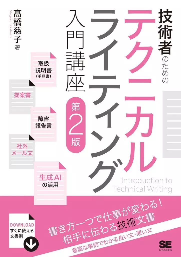 情報をわかりやすく伝えるために必要なのは、センスではなく技術!生産性が向上し、相手に伝わる論理的な技術文書の書き方日本では、「文章は論理的かつ簡潔に記述する」というテクニックを学ぶ機会があまりありません。そこで本書では、忙しい技術者の方でも「テクニカルライティング」を通じて、相手に伝わる技術文書を効率よく書けるようになるテクニックを多数紹介していきます。ユーザーマニュアルや障害報告書、提案書といった実務直結の例を多数紹介しているため、すぐに業務に役立てられます。豊富な文例とともに章末には実践的な「演習」を掲載しているので、新人~中堅の技術者の方だけでなく、管理職の方も添削指導のお手本としてご利用いただける内容です。この第2版では、生成AIを使った効率的な文章の書き方や校正、要約の仕方を加筆しています。生成AIを利用する際の注意点も紹介しているので、機密事項を扱うエンジニアの方には必須の内容となっています。【こんな方におススメします】・各種ドキュメントを書くのに苦手意識のある方・取引先や上司から、資料がわかりにくいと指摘されたことのある方・生成AIの利用に不安のある方【目次】第1章 ロジカルライティング×テクニカルライティング活用の基礎知識第2章 わかりやすく、簡潔な文章を書くテクニック第3章 読み手に伝わる文章を書くテクニック第4章 読みやすさを高める文書フォーマット~表現・表記のルール~第5章 実践編 ユーザーマニュアル・取扱説明書第6章 実践編 提案書第7章 実践編 障害報告書第8章 実践編 社外メール文第9章 生成AIの技術文書への活用【著者プロフィール】高橋 慈子(たかはし しげこ)東京農工大学卒。技術系出版社を経て、テクニカルライターとしてフリーランスで取扱説明書の作成に関わる。1988年テクニカルコミュニケーションの専門会社として、ハーティネスを設立。同代表取締役。企業の取扱説明書やマニュアル制作のコンサルティングや人材育成に関わる。テクニカルライティング研修のほか、ビジネス文書研修の企画や実施、各種セミナーで文章の書き方指導も行っている。