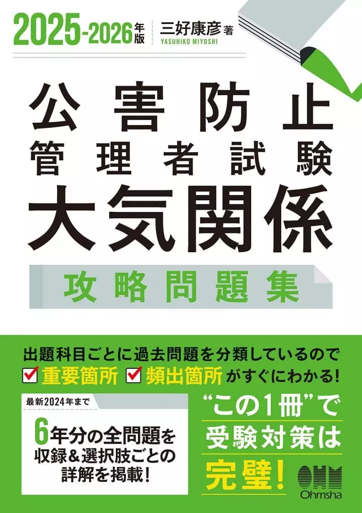 技術・工学公害防止管理者試験 大気関係のわかりやすい問題集 最新版!本書は、公害防止管理者試験「大気関係」の攻略問題集です。最新2024年まで過去6年分の試験問題を、出題分野に沿って整理・分類し、重要度と頻出箇所がすぐにわかるようになっています。各選択肢に詳しい解説を掲載しているので、この一冊で試験傾向の把握と対策が行えます。