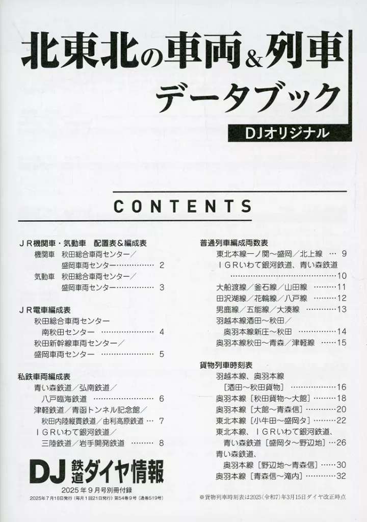 こちらの商品は、「DJ鉄道ダイヤ情報 2025年9月号」付録冊子単品です。