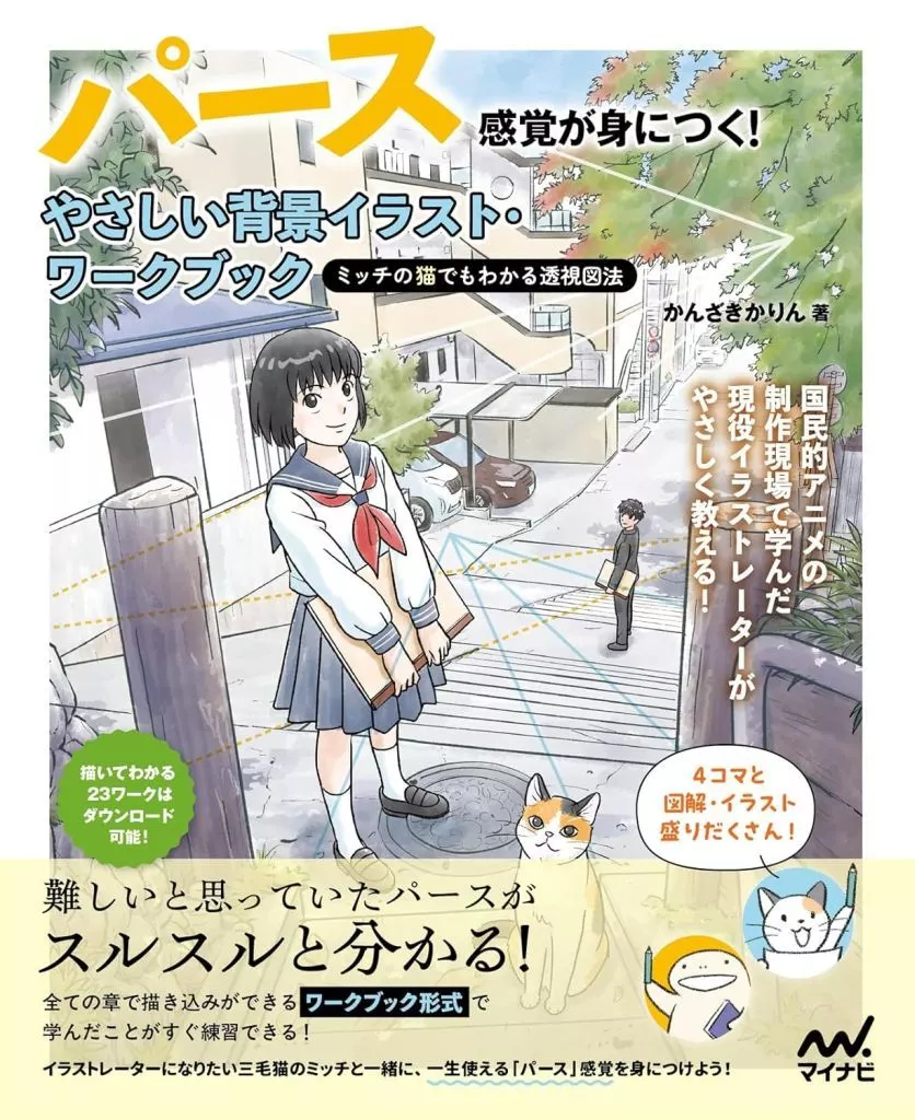 絵画初心者から始められる、パース(透視図法)を段階的に学べる実践的なワークブック。ねこのミッチの4コマ漫画と豊富な図解で、描く順序まで楽しく理解できます。基礎編では一点・二点・三点透視図法を、実践編では床や階段、円の描き方などパースの応用を使って背景作画に役立つ技法を解説。キャラ編では背景に自然にキャラを配置する方法も学べ、描き込み式で手を動かしながら習得できます。