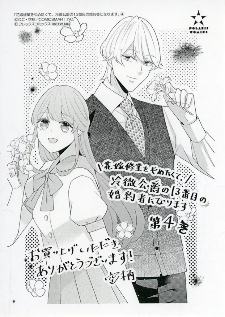 1枚仕様こちらの商品は、コミック「花嫁修業をやめたくて、冷徹公爵の13番目の婚約者になります(4)」の購入特典になります※店頭配布の店舗特典ペーパーにつきましては、配布店舗のコピー機で印刷されたものについても同じ品番での扱いとさせていただいております。ご了承ください。