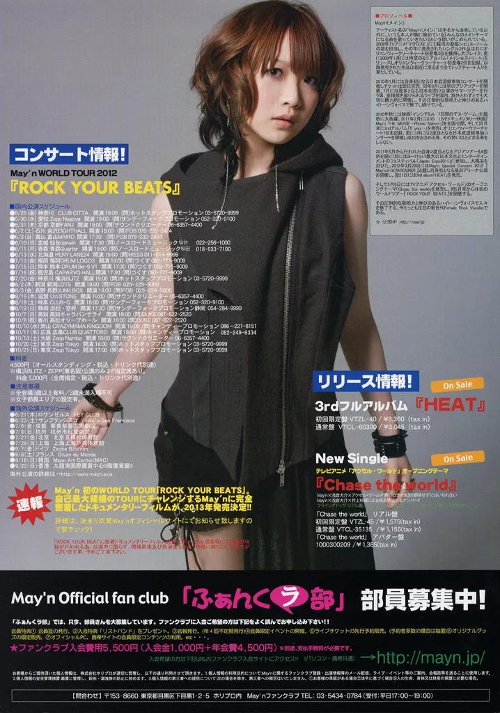 販促品 演劇 コンサート情報!May’n WORLD TOUR 2012『ROCK YOUR BEATS』/リリース情報! 3rdフルアルバム『HEAT』 フライヤー