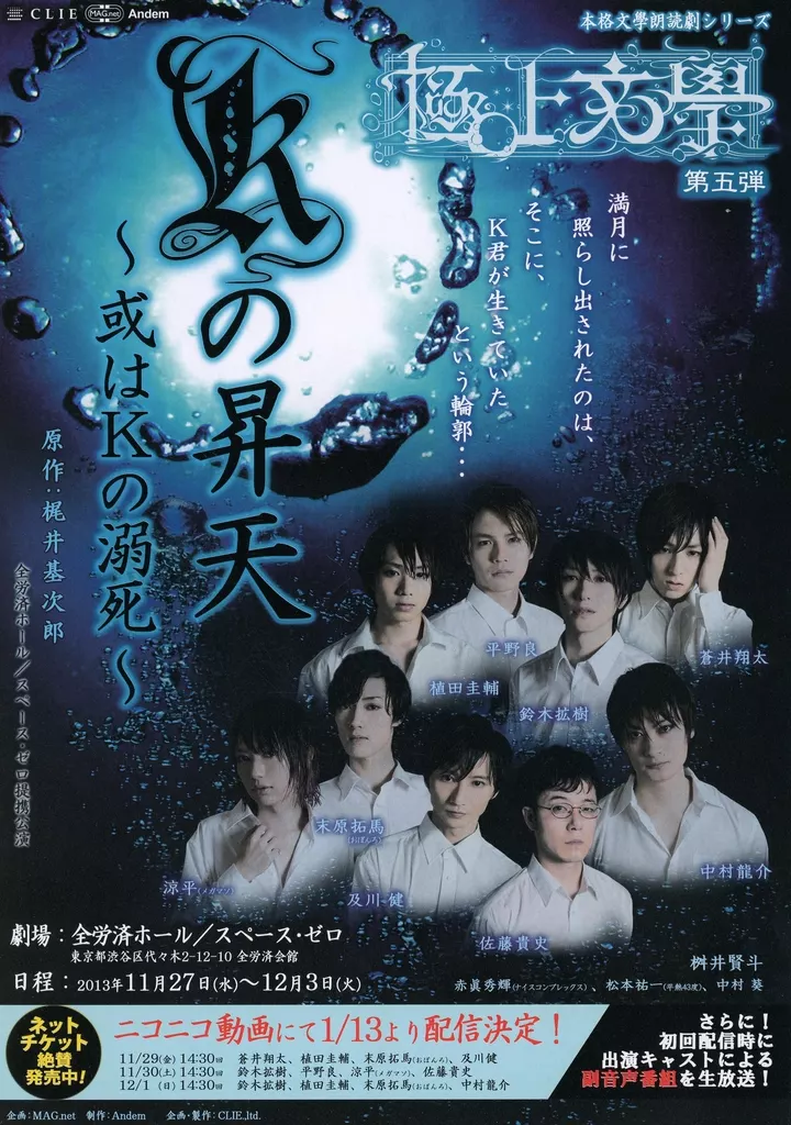 販促品 演劇 極上文學第五弾「Kの昇天~或はKの溺死~」 フライヤー (各回のメインキャストの組合せがすべて異なる“マルチキャスティング”!)