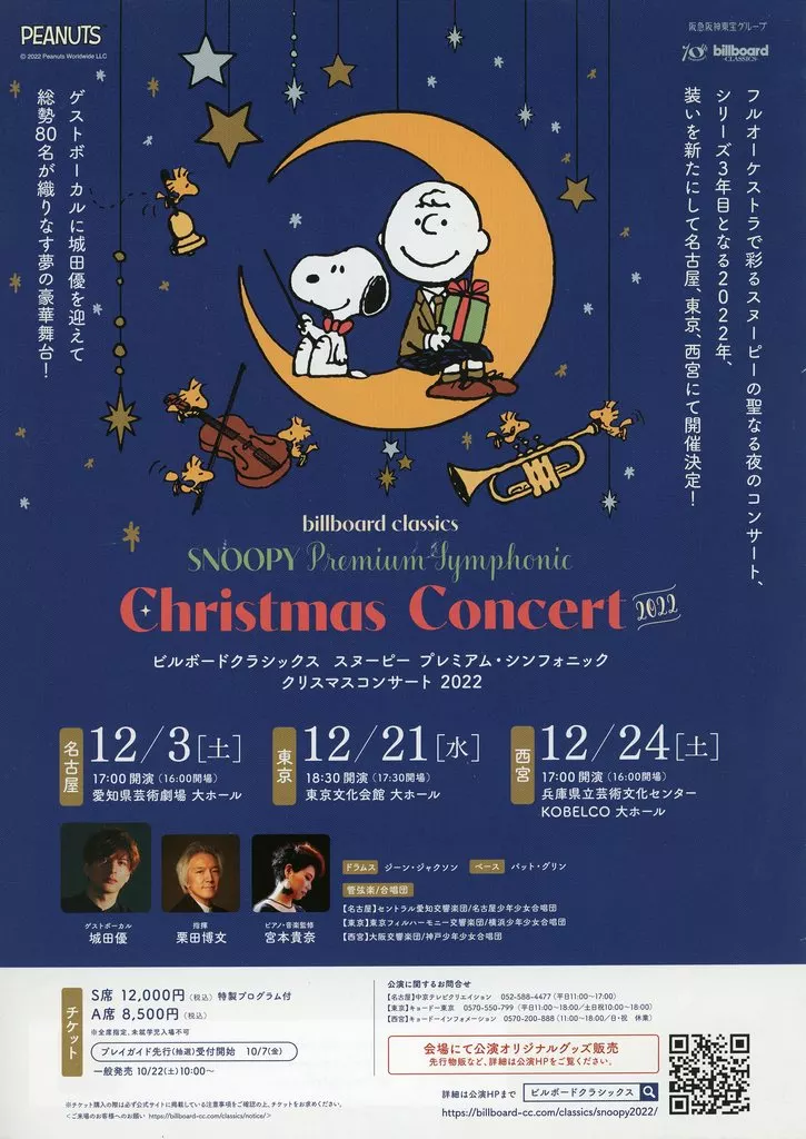 販促品 演劇 ビルボードクラシックス スヌーピー プレミアム・シンフォニック クリスマスコンサート 2022 フライヤー (ゲストボーカルに城田優を迎えて総勢80名が織りなす夢の豪華舞台!)