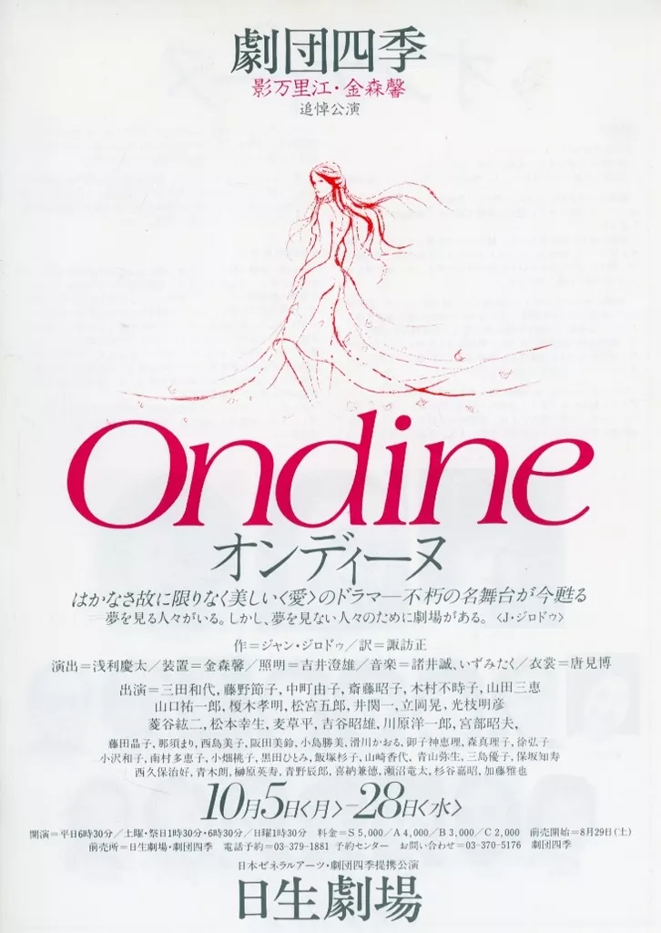 アニメムック 演劇 劇団四季 Ondine オンディーヌ 影万里江・金森馨追悼公演 フライヤー