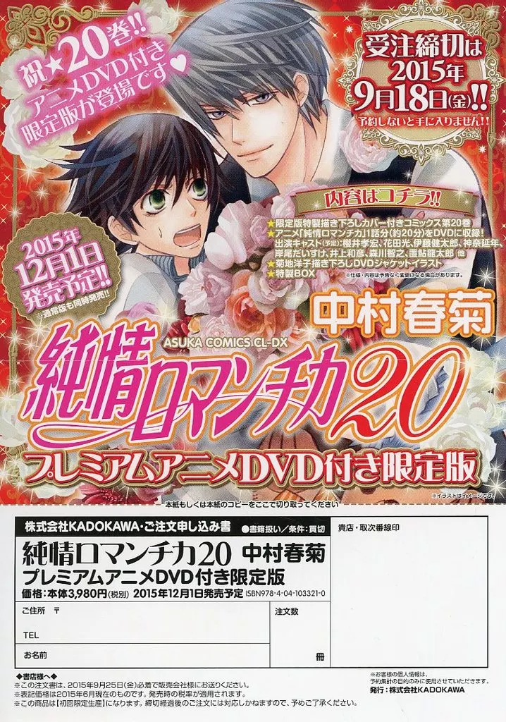 販促品 リーフレット・小冊子 純情ロマンチカ 20 プレミアムアニメDVD付き限定版 フライヤー / 中村春菊