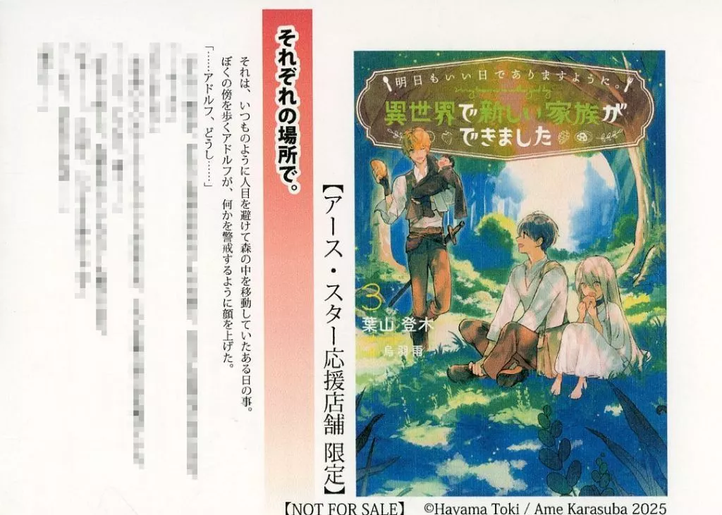 こちらの商品は、ライトノベル「明日もいい日でありますように。 ~異世界で新しい家族ができました~(3)」の購入特典になります