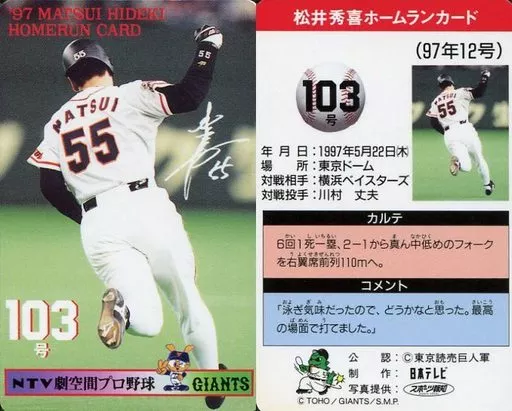 スポーツ/読売ジャイアンツ/97 松井秀喜ホームランカード 103号/松井秀喜