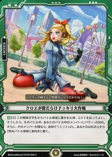 ラクエンロジック/U/戦術/緑/[L&L-BT02]ブースターパック Believe&Betray BT02/098[U]:クロエが隙だらけドッキリ大作戦