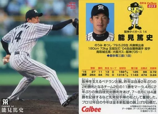 スポーツ/レギュラーカード/2016プロ野球チップス第1弾 052[レギュラーカード]:能見篤史