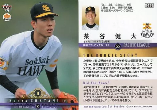 BBM/レギュラーカード/福岡ソフトバンクホークス/BBM2016 ベースボールカード 1stバージョン 025[レギュラーカード]:茶谷健太
