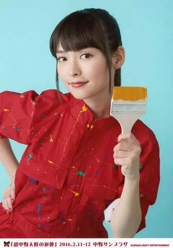 生写真(女性)/声優 上坂すみれ/バストアップ・衣装赤・左手筆・右手腰・背景青/「超中野大陸の逆襲」2016.2.11-12中野サンプラザ」/上坂すみれブロマイド第8弾