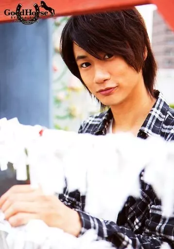 生写真(男性)/俳優 馬場良馬/上半身・衣装黒.チェック・左手おみくじ・ロゴ「Good Horse」/「馬会Vol.5~30th Anniversary in Osaka~」ブロマイド