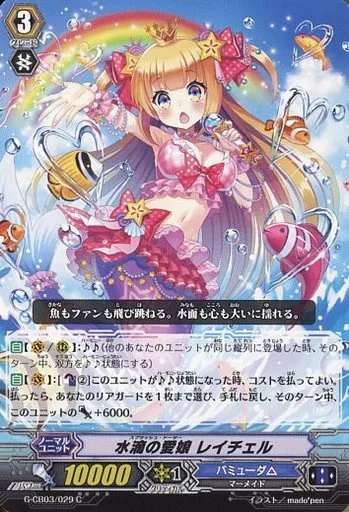 分類:ノーマルユニット/レア度:Cシリーズ:ヴァンガードG クランブースター 第3弾「祝福ノ歌姫」商品解説■ヴァンガードは1対1の対戦型カードゲームだ!カードを中心にアニメ・コミックなどのメディアミックスを展開しているぞ!