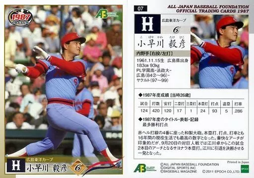 スポーツ/レギュラーカード/広島東洋カープ/日本プロ野球OBクラブ オフィシャルトレーディングカード 1987年編 07 [レギュラーカード] : 小早川毅彦
