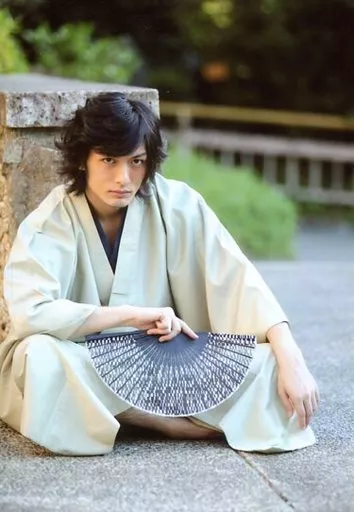生写真(男性)/俳優 久保田悠来/全身・衣装着物・座り・右手扇子・コンクリート/イベント販売生写真