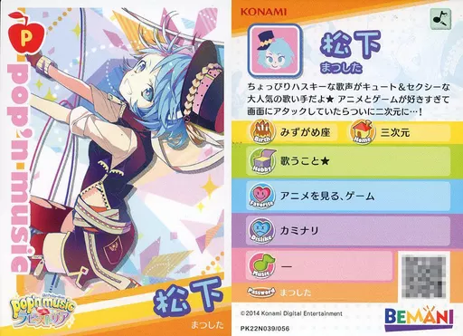 アニメ系トレカ/ノーマルカード/ポップンミュージック ラピストリア第一弾 PK22N039/056[ノーマルカード]:松下