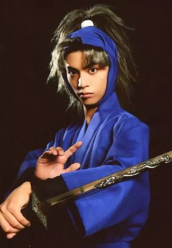 生写真(男性)/俳優 栗原大河(竹谷八左エ門)/上半身・左手刀・背景黒・キャラクターショット/「ミュージカル 忍たま乱太郎 第8弾 がんばれ五年生!技あり、術あり、初忍務!!」ブロマイド第1弾
