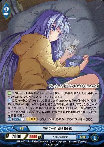アンジュ・ヴィエルジュ/R/青/PG/人間/超能力/ブースターパック「四天に舞う乙女たち」 B15-002[R]:(パラレル)特別な一枚 蒼月紗夜