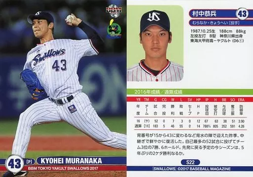 BBM/レギュラーカード/BBM2017 東京ヤクルトスワローズ S22[レギュラーカード]:村中恭兵